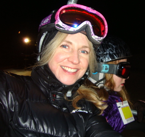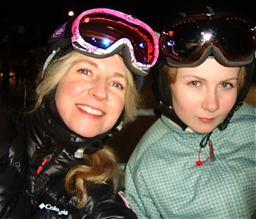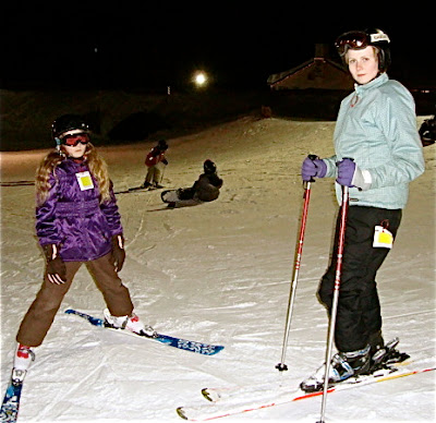 It is always a beautiful treat to be on the mountain at night. Tabs, Mist and I had the best time skiing. We stuck to green runs. Tabs was so adorable: she put her ski boots on in the van when we first arrived. It was dusk out, so she couldn’t see what she was doing very well. So, later on, after many runs and with the night full upon us, she complained to me that her ankles hurt–her ski boots were rubbing. I looked down and to my dismay, discovered she had her ski boots on the wrong feet! No wonder they hurt! I reminded her that the clasps go toward the outside. On one hand my heart was breaking for her sore ankles and on the other, I found the whole thing hilarious and had to stifle my laughter as to not hurt her feelings. Ski boots on the wrong feet look so…well… totally wrong!We stopped and changed her boots and all was well for the rest of the night. She only fell once and did a face plant. Mist helped her–losing one of her poles in the process. But we skied until the last chair. Pip didn’t want to ski so Peter took her skating. Then they had hot cocoa by the big bon fire beside the rink. A beautiful night… |