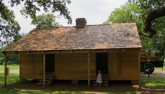 | A recreation of one of many slave quarters that lined the road behind the mansion. Originally there appeared to be at least a dozen or more of these houses behind the mansion. |