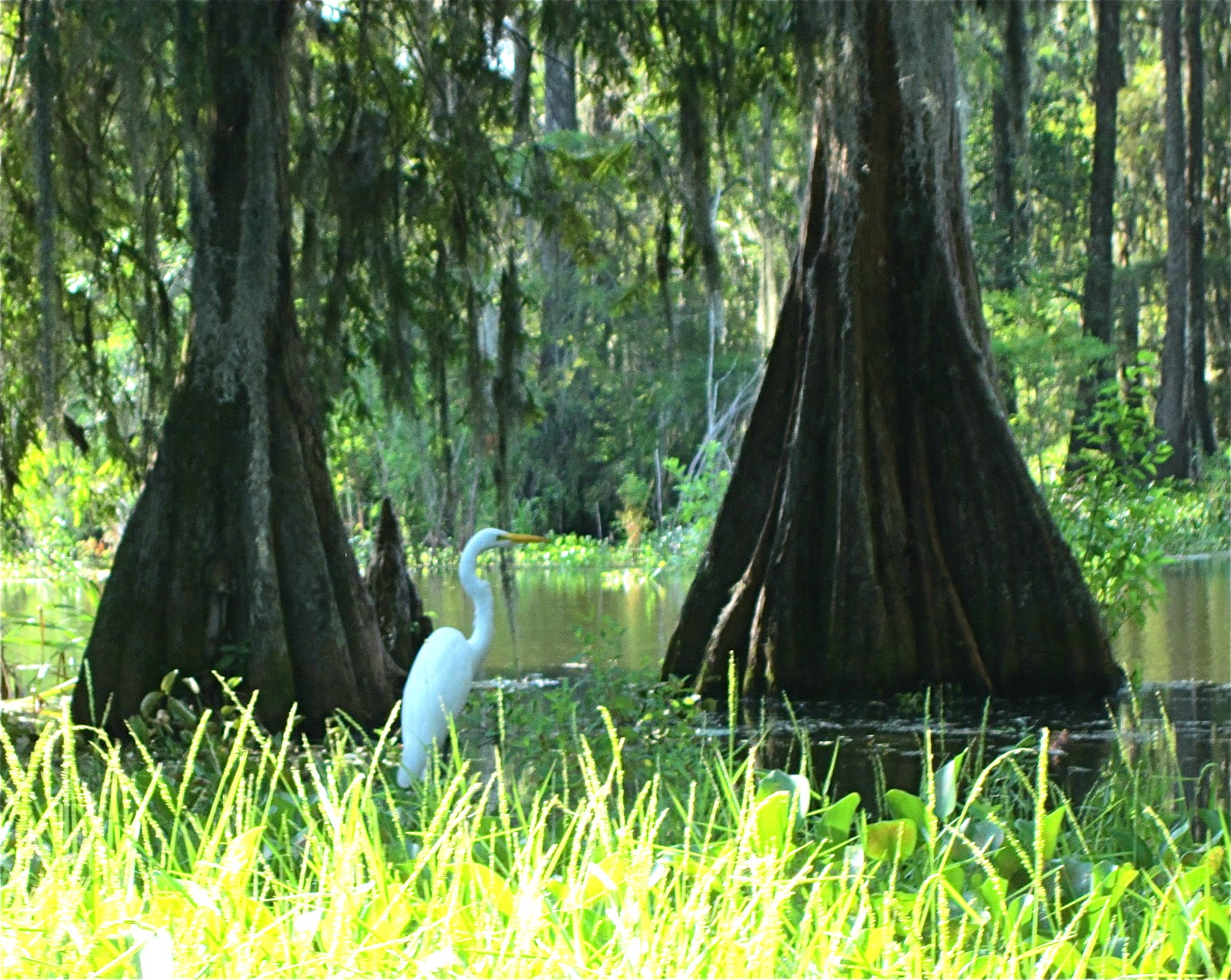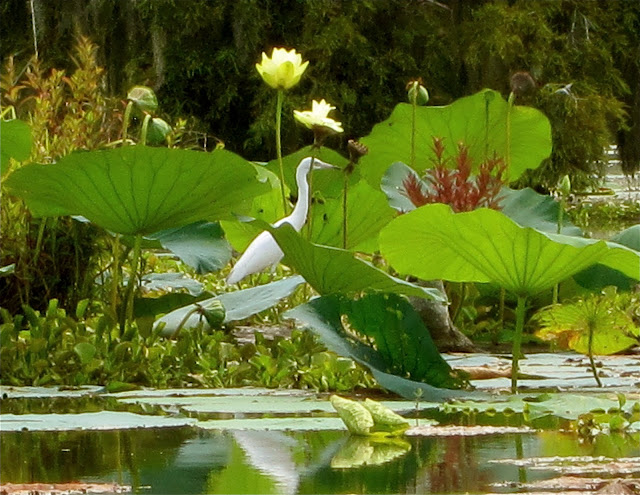 Spent yesterday morning with my family on a boat touring Louisiana’s largest bayou, Bayou Teche near the towns of Breau Bridge and Lafayette. It was amazingly peaceful, beautiful with the intoxicating scent of lotus blossoms and teaming with large water birds.The boat tour was informative and interesting as we heard all about the swamp wars between boat companies. One constantly trying to sabotage the other’s business through chasing away alligators etc. It was a very hot morning and I had to continually douse Pip with water and soak her sun hat to keep her cool enough in the boat. The Bayou Teche is the most beautiful serene place and the bird watching is out of this world! I want to go back and spend the day on the bayou in a canoe. I learned that the local Cajuns are actually long lost Canadians. When England took over Nova Scotia and New Brunswick in 1755, they expelled all of the French. Some of them migrated south and ended up on the Bayou. Cajun actually derived from a slang way of saying Acadian.