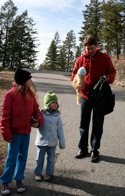 Peter and his dolly. Tee-Hee. Actually he’s holding Tabs’ doll for her on a hike.