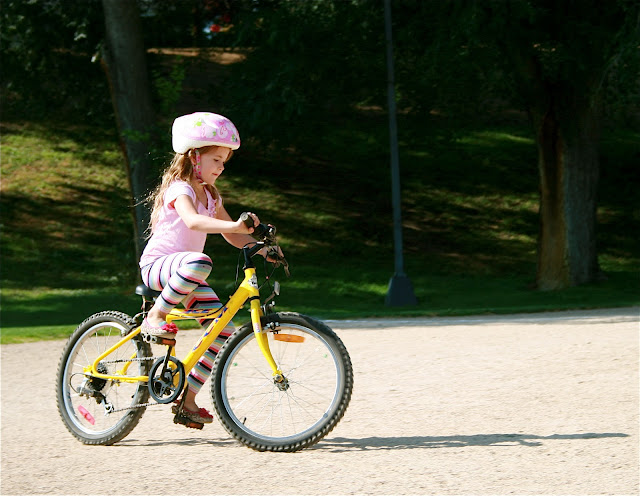 I’ve spent late summer teaching our youngest, Pip to ride a 2 wheeled bicycle. We live on a steep hill, so it isn’t as easy as saying, “just go and practice on our drive way.” Either her dad or I drive Pip and bike to flat parks to practice.
