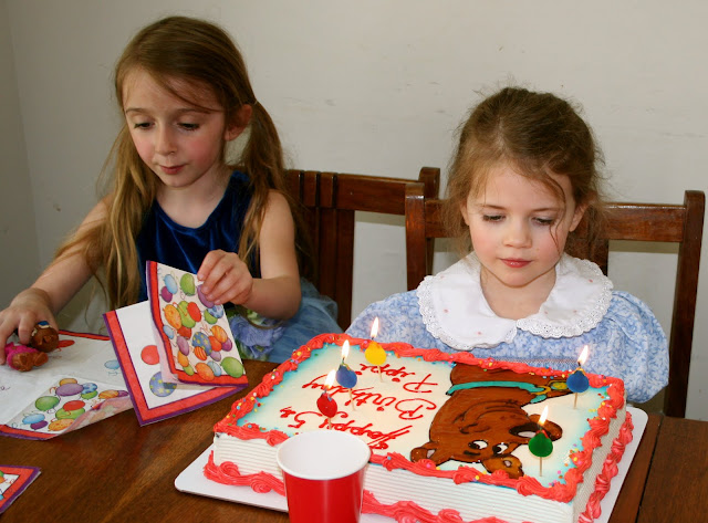 Pip is adorable. About an hour after the party, I couldn’t find my little darling. She had passed out asleep on my bed–I snapped the Pic without her waking up. Last night she came into my room crying hysterically. She realized she’d forgotten to make a wish when she blew out her candles. I assured her she could shut her eyes, make a wish and blow right then and there and the wish would count. She did it and was happy again.