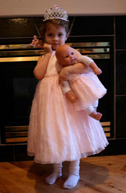 Pippi, yesterday on the very day she turned 4 years old. The dresses for dolly and Pip are from Auntie T and the dolly “Brianne” is from Granny. Pip had an exciting day with presents galore. She will have her party this Sunday at home.