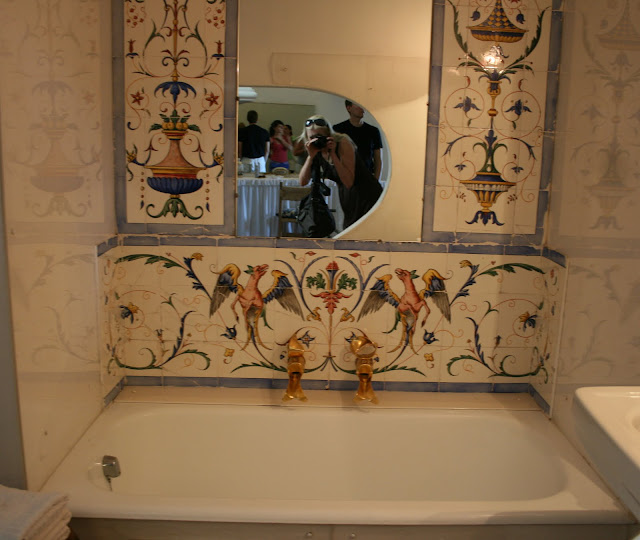 | Gala’s bath. Note the lovely patterns on the tiles–Catalan is famous for their ceramics. |