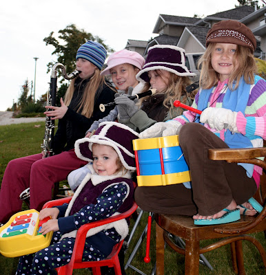 The girls with their neighbors–Marisa and Olivia in their 5 woman band. They raised a total of $1.75.�