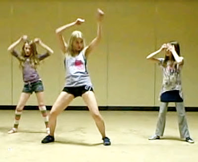 Just to be clear, the dances I post are not  interpretive dances. I choreograph the dance specifically for a Zumba class. They are fitness dances designed to be taught to dancers that are not professionals–people who love to dance. They are for a Zumba Fitness dance class. If I were to do an interpretive dance to the song it would be completely different choreography. My lovely daughter Tabs, niece Anemone and friend Mik join me. They had never danced to the song before this taping. I thank them for being such brave and graceful first-time dancers to this song. We were in a big rush and only had time to dance through the song one time. So this is it! We girls just want to have fun.