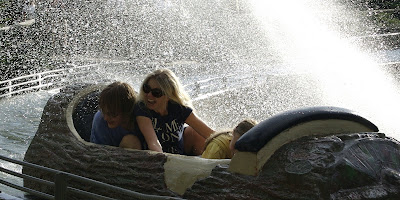 Kyran and I on the log ride. The two cowards–Mist and Tabs up front hiding.