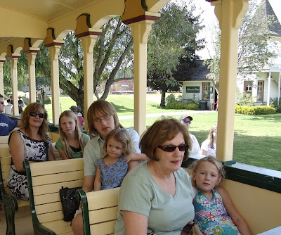 Theresa, Mist, Kyran, Pip, Mom and Tabs on the train–a great ride over 1/2 hour in length through beautiful country with bison herds.