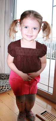 Her pony-tails were such a hit, that when I went to pick her up at day care, I discovered all three little day care girls in matching pony tails. Linda said that they all wanted to be like Pippi today–so cute.