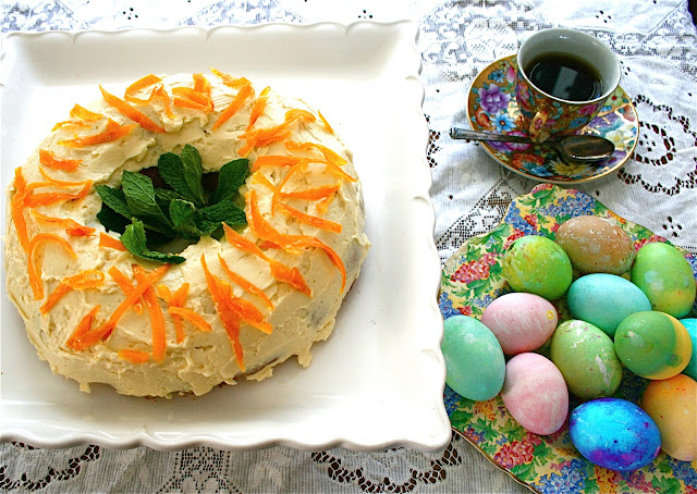 I baked this cake on Easter Sunday to celebrate my mom’s birthday. I made the candied orange peel myself by boiling sugar and water and adding the peel until the syrup was thick like candy. The cake is substantial and not too sweet.