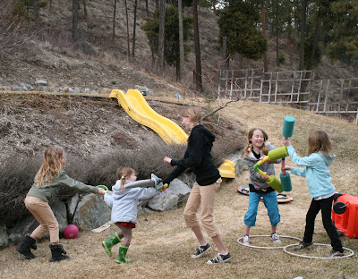 Sword fight in the back yard: my girls plus the neighbors. Spring is here!