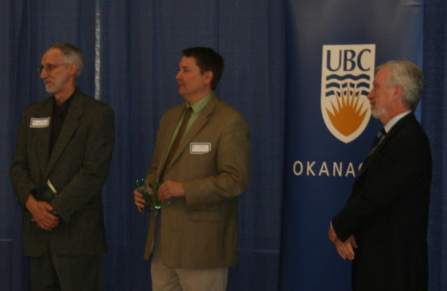 Peter accepting his teaching award from UBC. The award means he is in the top %10 of all teachers at UBCO as evaluated and voted on by undergraduate students.