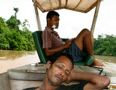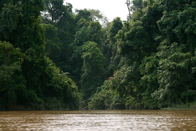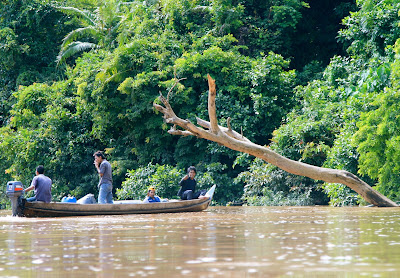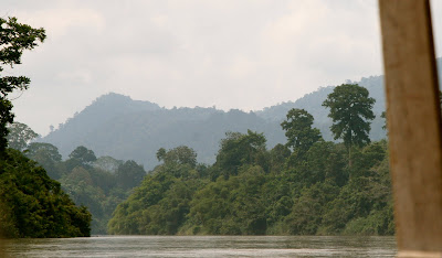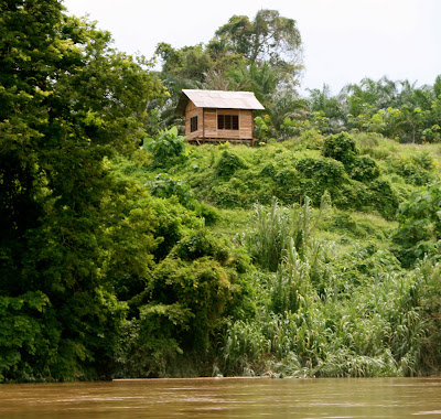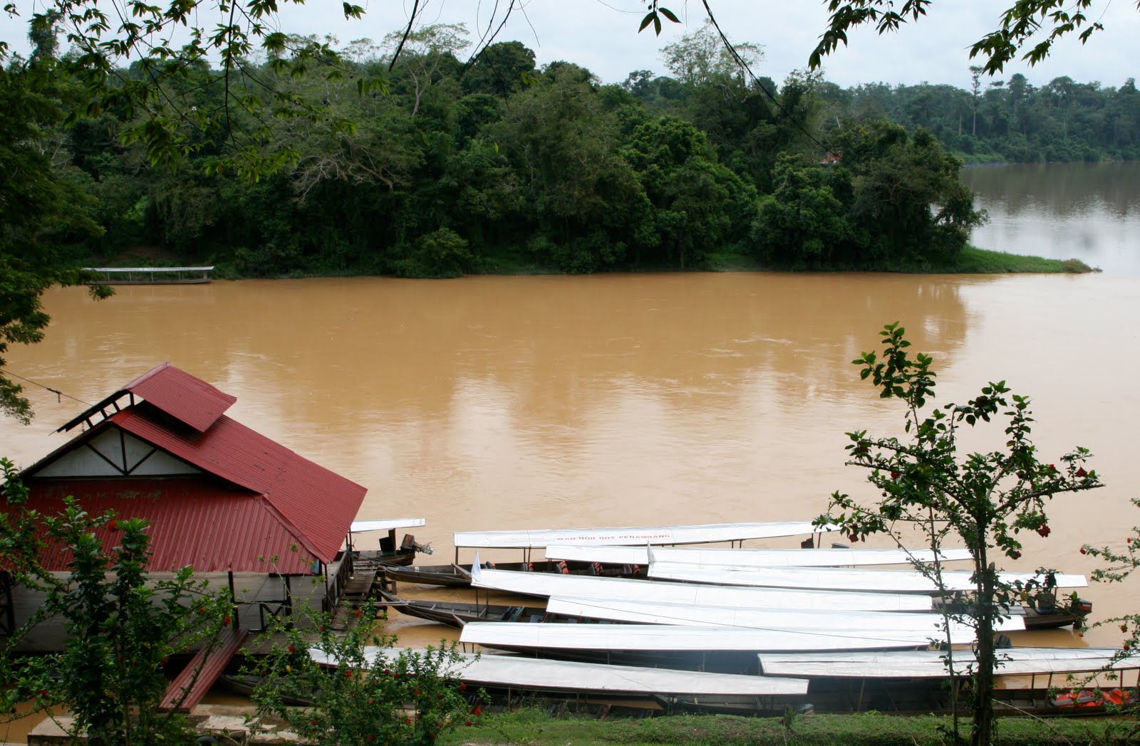 We have arrived deep into the oldest rainforest on earth. The trip here was amazing–like something out of a novel. The bus trip to the jetty was uneventful-3h long and then we arrived at the jetty. We had to hang around for a couple of hours until our boat arrived. Peter got overheated and felt very ill. I found an office with air conditioning and insisted he rest there. He seems to have a little tummy bug and I realize now that it wasn’t my ulcer returning but a tummy bug we must have caught in the Vancouver airport. I am better and Peter is nearly better.