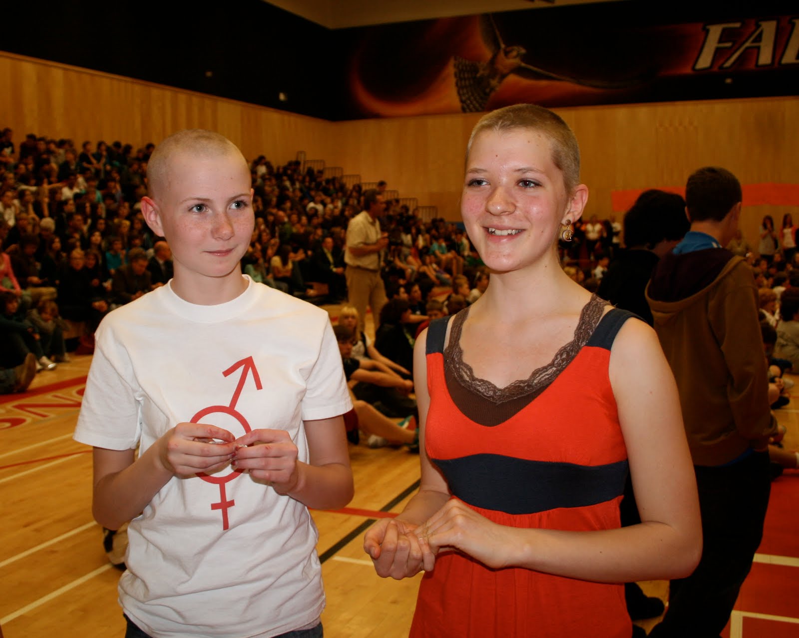Here she is in all her bald glory: darling Mistaya. On Friday she had her head shaved to raise money for Bc Children’s Hospital. Mistaya raised $500 personally for the cause. Thank-you to all that supported her! And I just have to say, could that little bald head get any cuter? She still has the stork bite birth mark at the back of her scull I have noted ;). She is pictured with a friend who also made the bald journey.