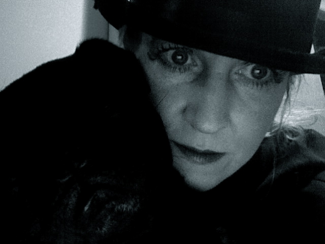 Me and my dogs. (top) Wee little Pablo, our Old Boston Bulldog puppy and (bottom) Fernando our pug. Mistaya practiced her theatre makeup skills on me last week and then we took these pics. I think they are just festive enough for the pending New Years Eve Celebrations!
