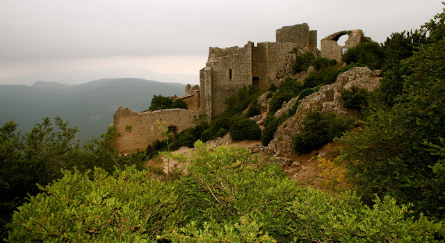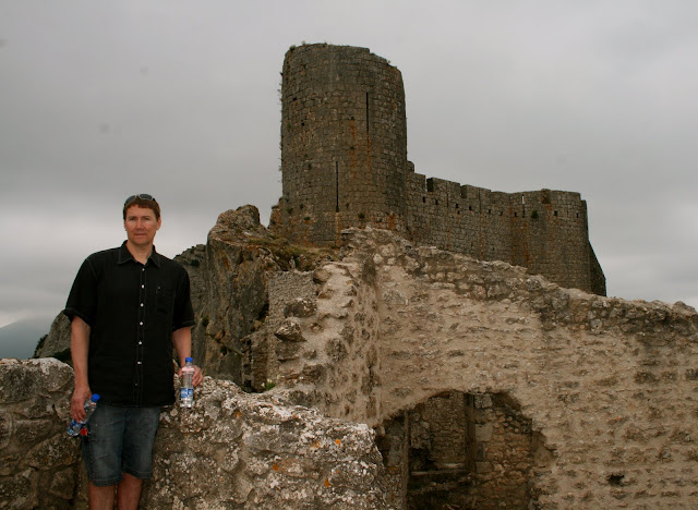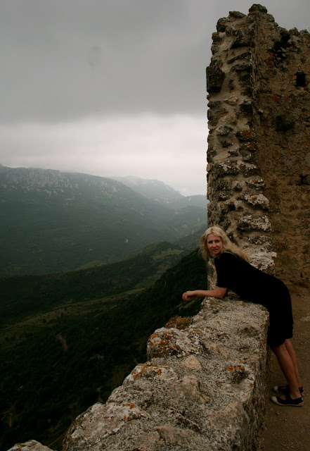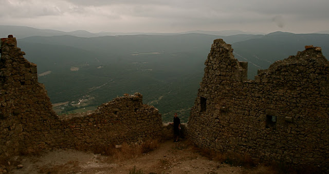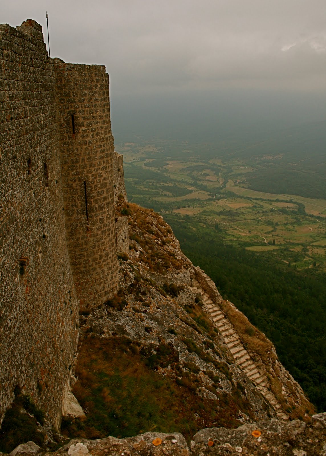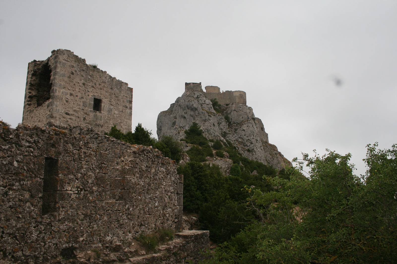 We walked up those very steps to reach the upper castle. One can see its neighbouring Cathare castle,