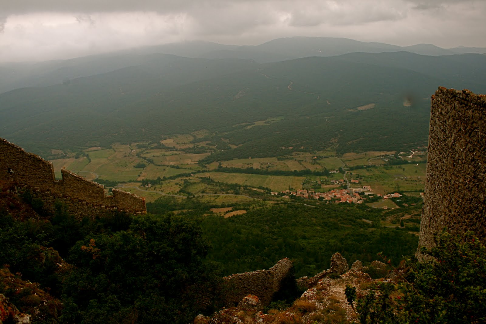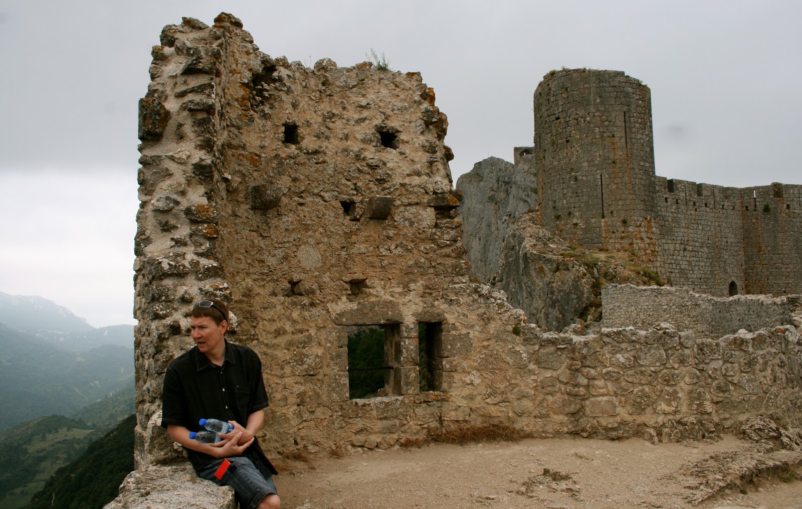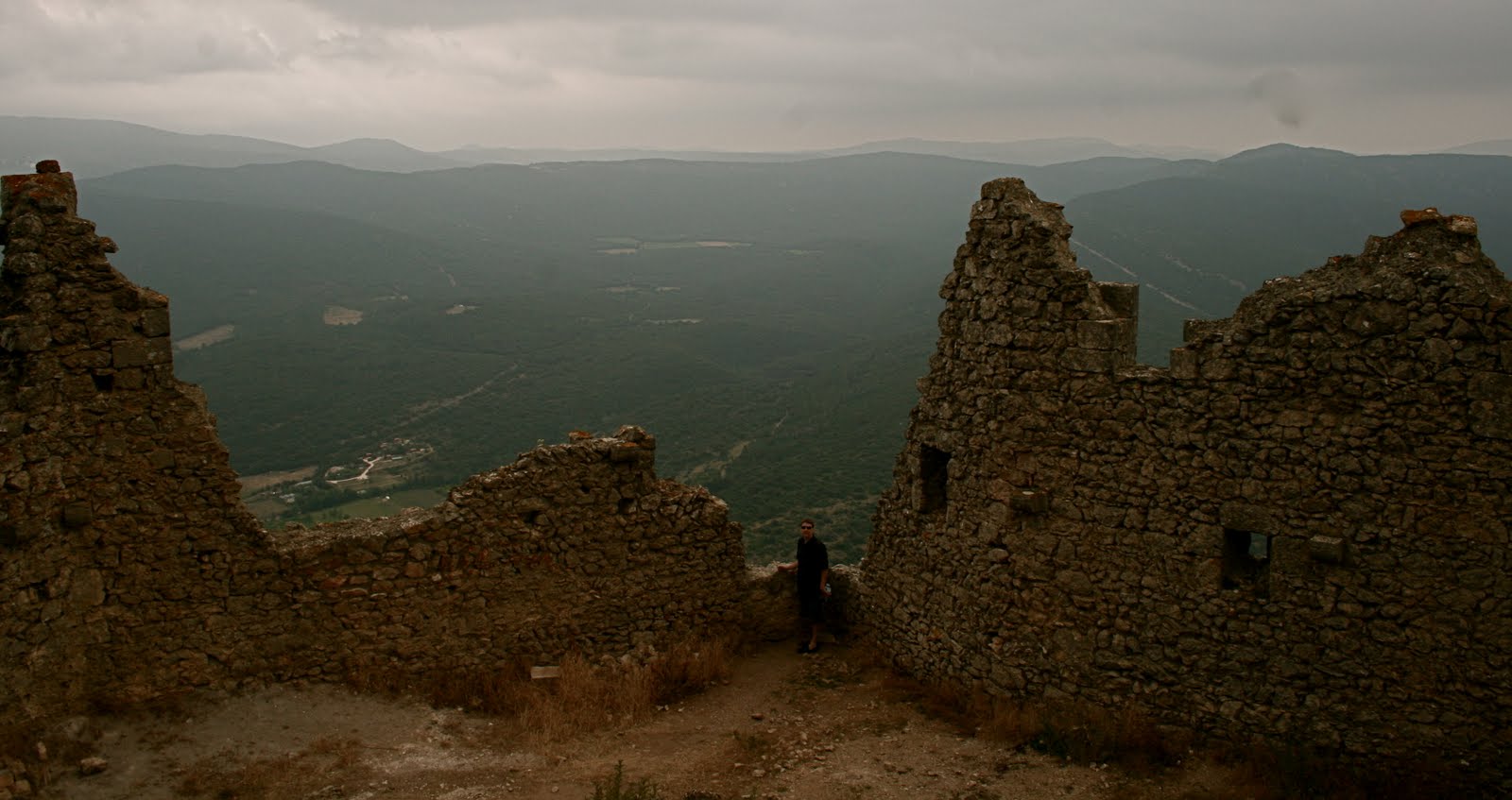 We walked up those very steps to reach the upper castle. One can see its neighbouring Cathare castle,