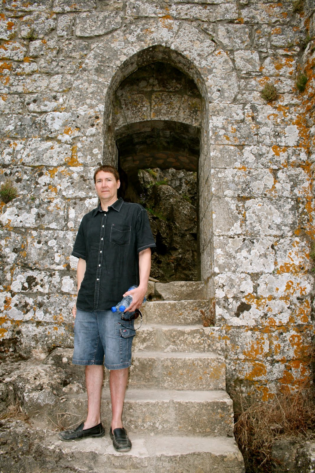 | Peter on the King Louis steps–the other side of the railing is straight down 800 m. |