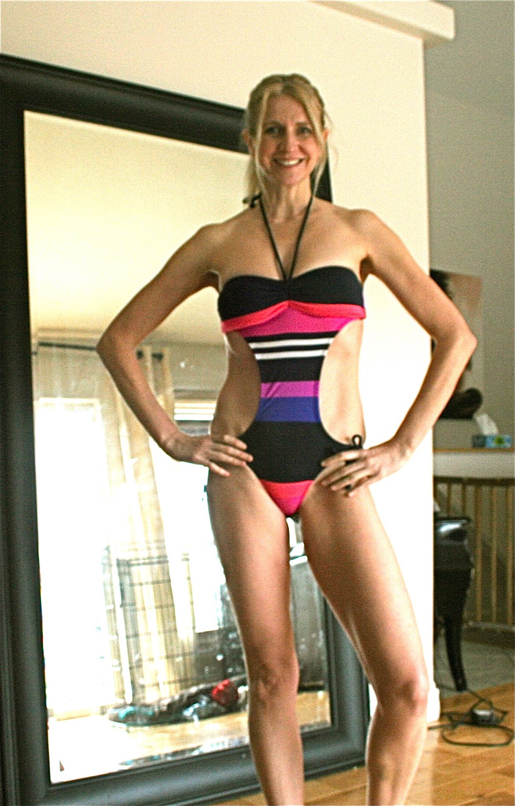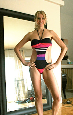 The mono-kini in the shots below is the bathing suit my darling teen-age daughter hated and advised me not to purchase. I couldn’t help myself, I love it. It is so 70’s retro. I snuck back to the mall the next day and bought it just for me.