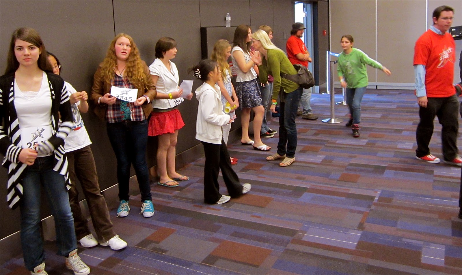 Tabitha was amazing this weekend in Vancouver. She auditioned for The Next Star. She made it to the third round before being cut. Her determination, maturity, passion for music and performing blew me away. The entire weekend was a whirlwind of “out of the box” amazement. Thank God Peter agreed to join us this weekend. I could not have done it without him. I had no idea the “small” keyboard I rented was as big and heavy as a Baby Grand! Peter was also the one to stand in line at 4:30 a.m. (as he is always a super-early riser). Tabs, Pip and I joined him at 5:45 a.m.