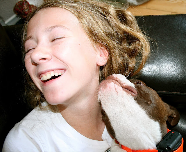 The following photos are of my daughter, Tabs and my Old Boston Bull Dog, Pablo. Tabitha has a special bond with Pablo. She insists she gets to take him with her when she leaves for University (many years from now). I said, of course.