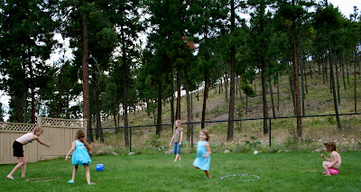 Bought the girls a kiddie pool this afternoon. I’m too freaked to get anything bigger with Pip still a tot. And Nem, Tabs and Mist bought themselves giant round super soft stuffie pets. They fought over which character each wanted. They came to a pleasant compromise–deciding to share all three, rotating houses and naming each creature together.