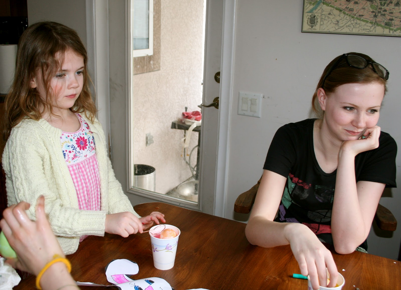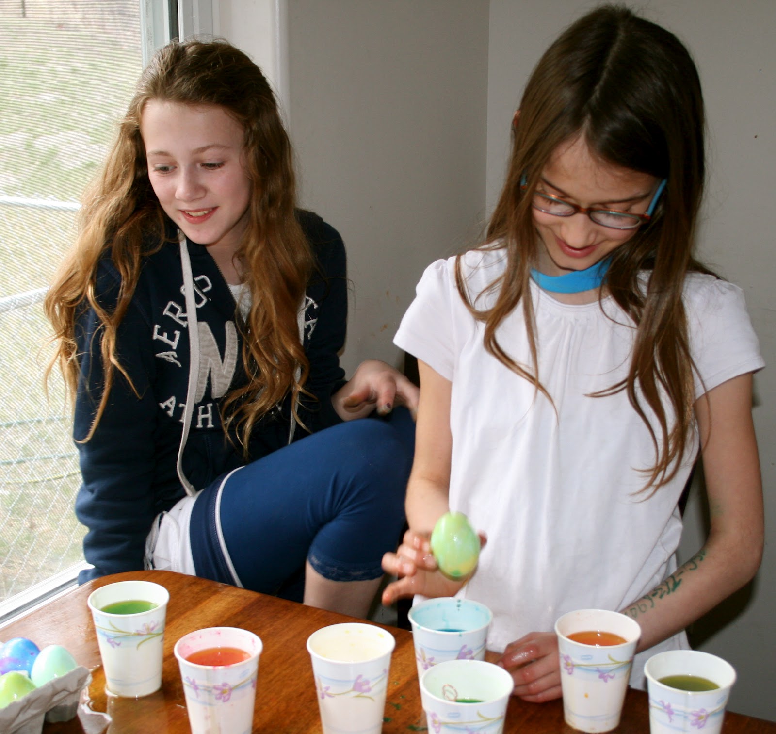 My daughters, cousin and friend colouring eggs for Easter.