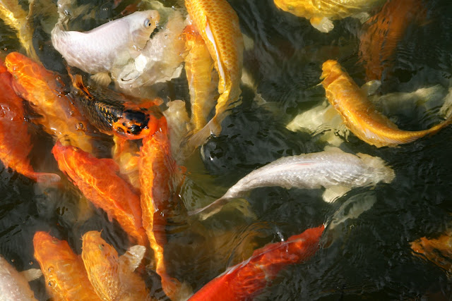 I thought you might appreciate some artistic shots I took of the fish pond and turtle pond at the Malaysian Buddhist Temple.