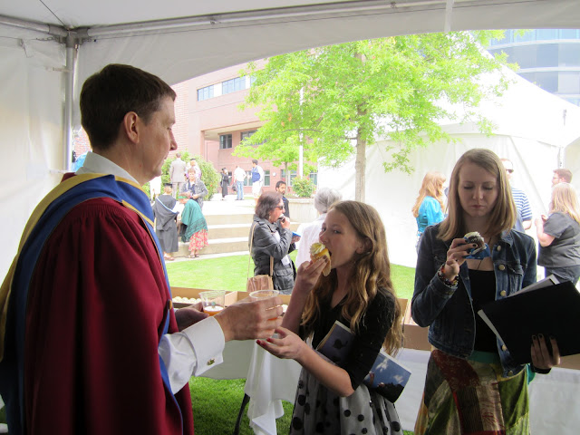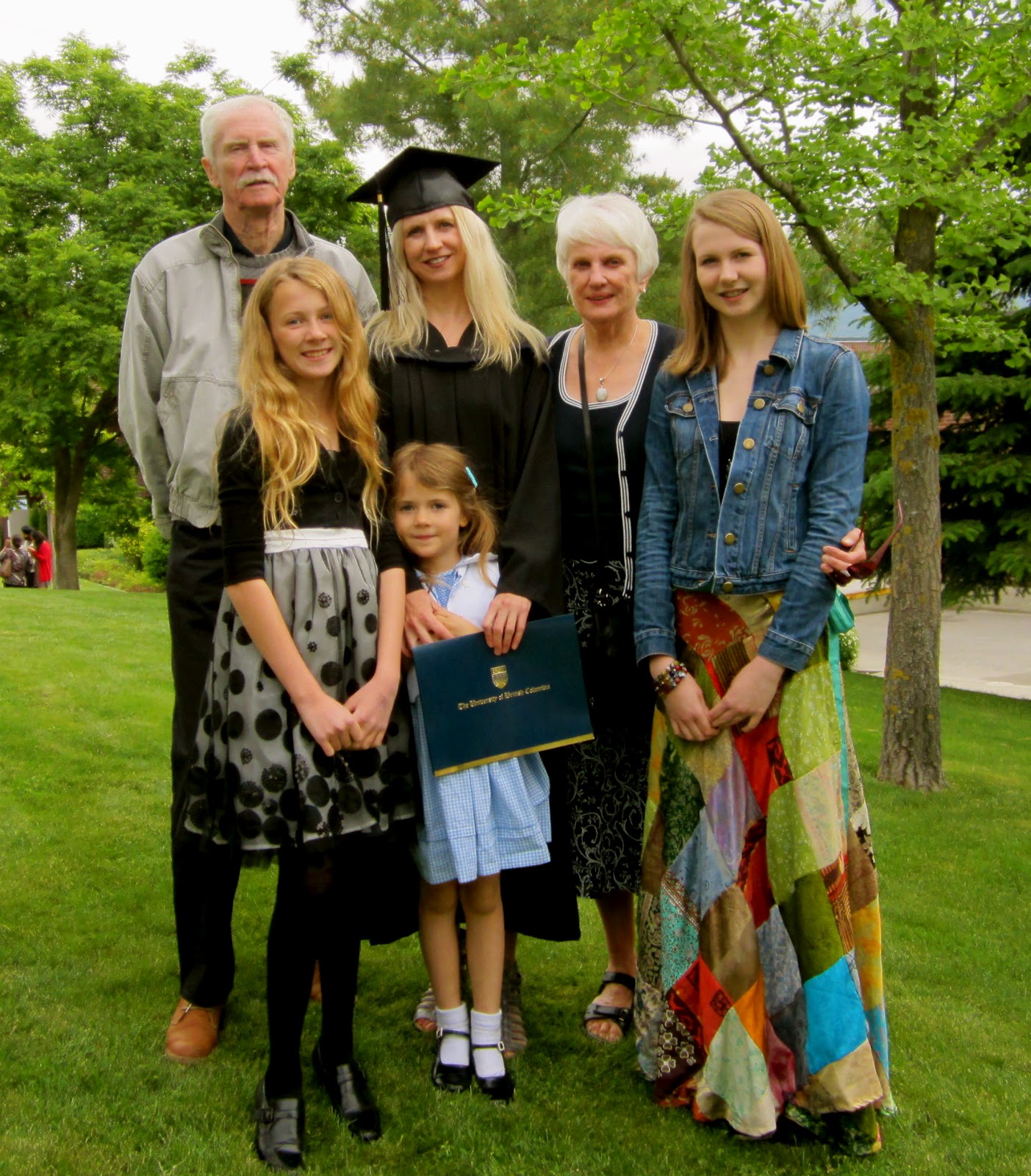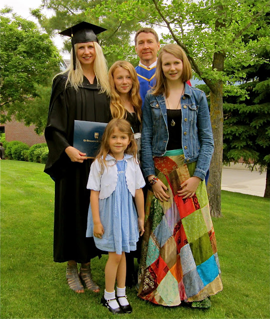 I convocated from UBC–Master of Arts degree. It was truly a gift that my mom and dad came to visit for the occasion and the girls took the morning off of school. It was an early and long morning but worth while. I never attended my undergraduate grad so this was all new to me. Peter works at UBC as faculty so he was also at convocation in his UBC robe. After the ceremony we went out for lunch down town and then my parents left for Kamloops and Peter caught a flight to Vancouver. Tonight I shall relax with my girls. So very tired. So many things happening in my life this month. But tonight, just tonight I shall breath…I do believe D.Q. blizzards all around might be in order! Thank-you to all of my dear family who supported me in this endeavor. Congratulations to all my fellow graduates this spring! May our degrees make us useful and bring good karma.