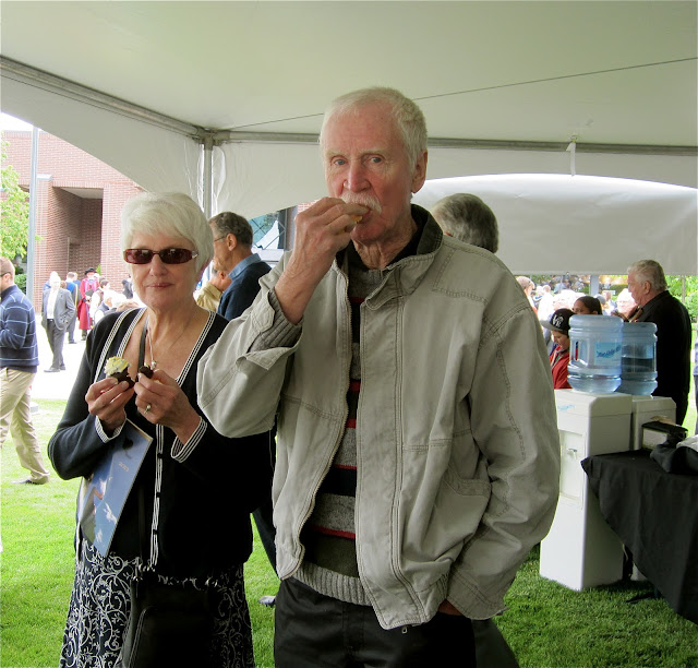 | Mom and Dad enjoying refreshments on the lawn after the ceremony. |