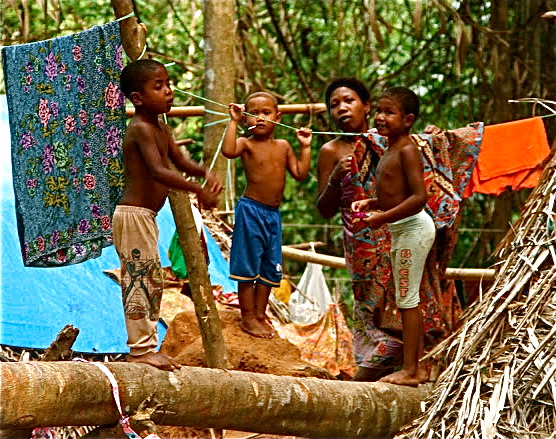 | One of the globe’s vanishing cultures: A woman and children of the Batek peoples of the Taman Negara jungle in Malaysia. Photo by Mix Hart, 2010 |