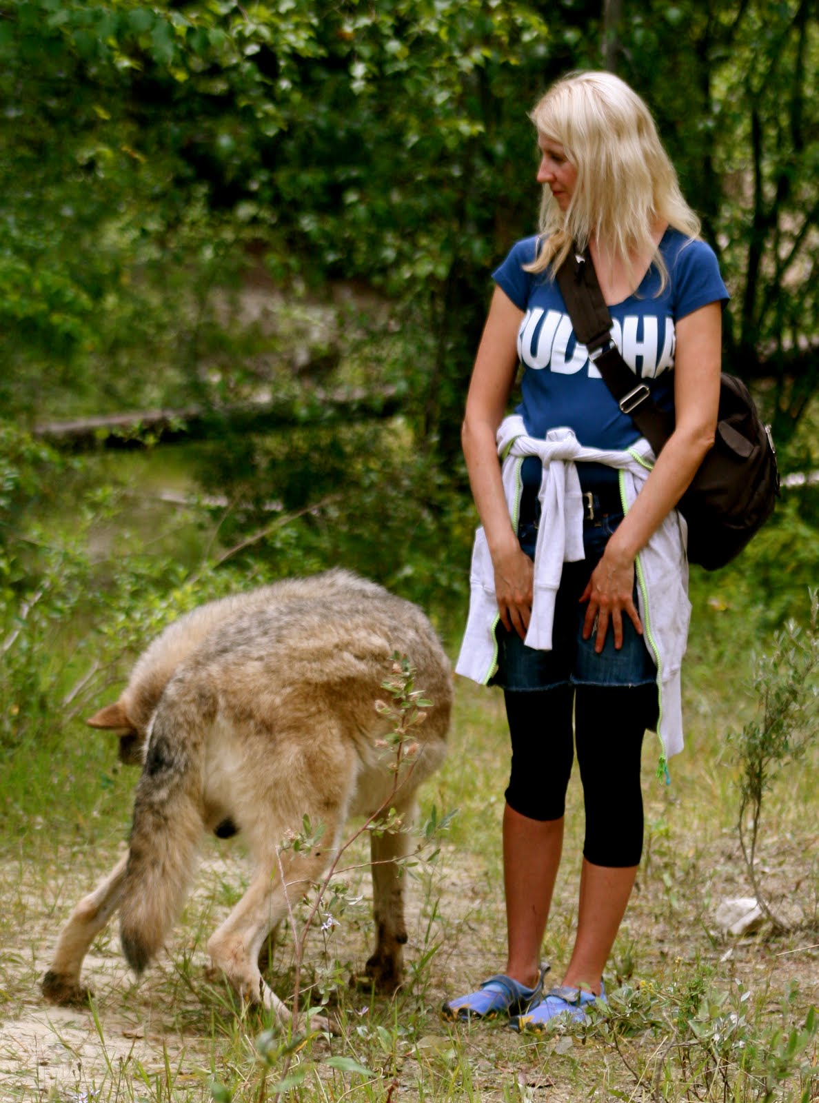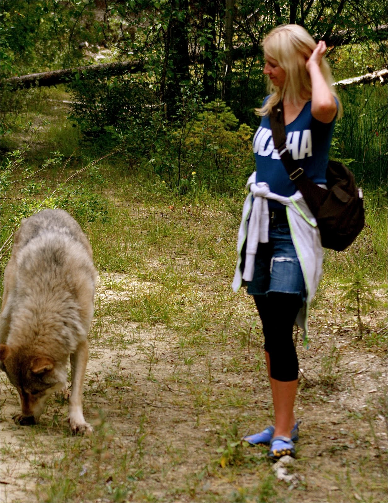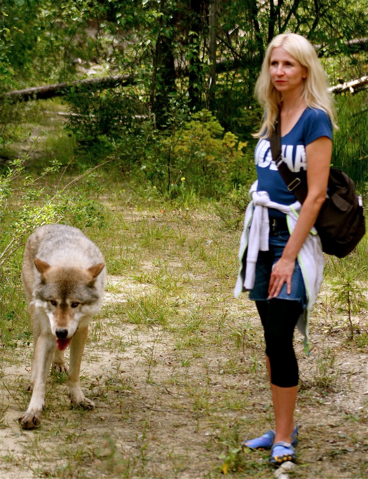 The wolves were beautiful creatures. The female especially seeming very gentle yet, more aloof than the male. She had intense eyes that always looked beyond the humans, as though we were of little interest to her. Most likely it was wolf pack etiquette.