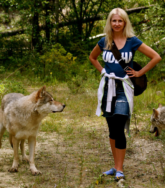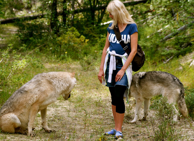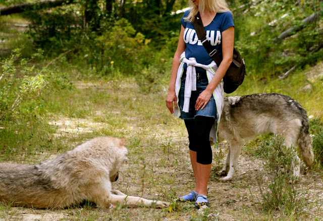 I will however, publish the pics of the wolves and I, taken by the owners of Northern Lights Wolf Centre.